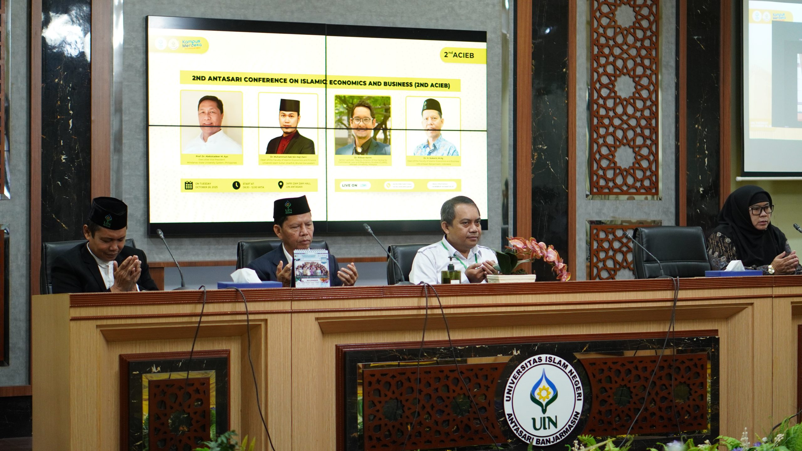 Banjarmasin, 28 Oktober 2025 — Fakultas Ekonomi dan Bisnis Islam (FEBI) UIN Antasari Banjarmasin kembali menunjukkan kiprahnya di kancah internasional dengan menyelenggarakan 2nd Antasari Conference on Islamic Economics and Business (ACIEB) 2025 pada Selasa, 28 Oktober 2025, bertempat di Aula Rektorat UIN Antasari Banjarmasin disiarkan secara hybrid melalui platform daring melalui zoom meeting dan youtube live yang dihadiri oleh dosen, tenaga kependidikan, serta mahasiswa/i.